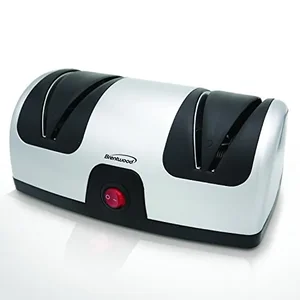 The Brentwood Electric Knife Sharpener provides an easy, automatic way to sharpen most non-serrated kitchen and sport knives to a razor-sharp edge. With a special two stage system, it precision grinds a perfect sharpening angle, then fine hones and polishes the edge for professional results at home, anytime.