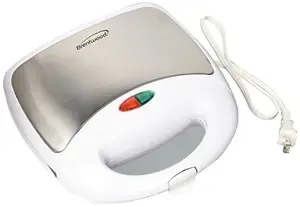 Cook up to 2 paninis using the powerful 750w Brentwood Non-Stick Panini Press and Sandwich Maker. Features fast, even heating non-stick plates, power/preheat indicator lights, upright storage, and cool touch housing. Glossy white finish and brushed stainless steel accent complement every countertop.