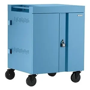 This Sky Blue Charging Cart is designed to accommodate up to 16 devices, providing a secure and organized space for charging. It features a durable back panel that enhances stability and safety while in use. Ideal for classrooms, offices, and workshops, this cart ensures that your devices are always charged and ready for action.