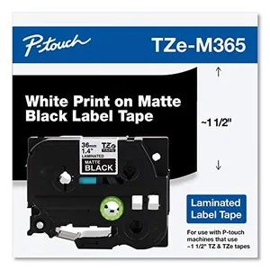 Brother TZEM365 Matte Black Label Tape - 1.4" Wide