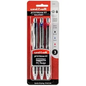 Jetstream Rollerball Pen features an innovative ink system that unites the smoothness of a gel and the quick-drying of a ballpoint for high-speed writing performance. Pen writes amazingly smooth while providing crisp, vivid lines. Uni Super Ink helps resist smearing and prevent check and document fraud. Pigment-based ink contains particles that form an indelible bond that cannot be broken. Quick-drying ink helps prevent smearing. Rollerball pen also offers embossed grip and stainless steel accents for an elegant look. Only the black and blue pens are refillable.