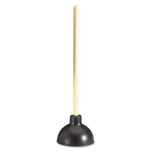 This professional-grade toilet and drain plunger features a durable 20-inch wood handle and a 6-inch diameter rubber cup, designed to provide maximum suction power for effective unclogging.