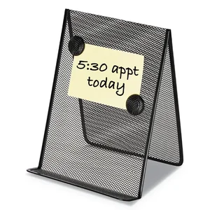This sturdy and stylish black metal mesh document holder is designed to enhance your workspace. Measuring 9" x 8" x 11 5/8", it offers a free-standing design that keeps your documents organized and easily accessible.