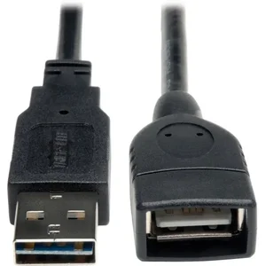 Tripp Lite's UR024-06N 6 in. USB extension cable features a Universal / Reversible, A-Male connector, and is manufactured using USB2.0 cable. Universal / Reversible connector allows the cable to be plugged in any direction. This cable is backwards compatible and can also be used with the older USB 1.1 cables. Made with superior foil shielding for reliable error-free data communications. Features nickel plated connectors and gold plated copper contacts for superior conductivity. The cable is manufactured with molded connectors and integral strain relief for extra durability and long life. The significantly faster data transfer rates of USB 2.0 (up to 480 Mbps) makes it perfect for multimedia applications.