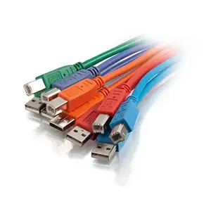 The C2G 2m USB 2.0 A/B Cables come in a convenient 5-pack, featuring vibrant colors such as blue, purple, red, green, and orange. Each cable measures 6.6 feet in length and is designed to connect USB (M) to USB Type B (M) devices. Perfect for printers, scanners, and other peripherals, these cables ensure reliable data transmission at USB 2.0 speeds.