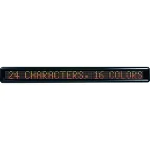 Program messages on Moving Message LED Sign with the easy-to-operate remote control. Sign stores up to 26 messages and holds up to 200 characters. Multiple messages can run at one time. Scrolling characters are 2" high and in 16 colors. Sign includes networking software, networking cable with adapter, UL listed power transformer, IR remote keypad, and mounting brackets. Moving message LED sign comes with a detailed operating manual.