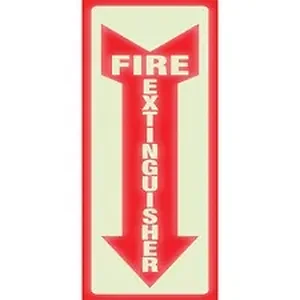Durable sign features an arrow and the words, "Fire Extinguisher," that glow in the dark to guide the way. Glow-in-the-dark feature makes it highly visible.
