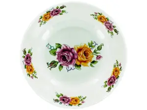 This beautiful 8" diameter bowl is perfect for serving salads, cereal, and more. Made from durable melamine plastic, it features a stunning, multi-colored rose design that adds a touch of elegance to your dining experience. Whether for everyday use or special occasions, this bowl is both practical and stylish.