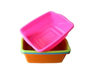 These versatile oblong basins serve not only as dishpans for washing dishes by hand, but they also have countless other uses. Perfect for storage solutions, they can help organize items in the playroom, keep camping gear sorted, or tidy up the office. Available in bright colors like orange, pink, green, and blue, these basins are as functional as they are vibrant. Each basin measures 15" x 12 1/2" x 5".