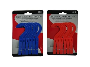 Perfect for those who prefer drying laundry naturally, this pack of six clothespins is designed with convenient hanger tops. Whether you want to hang them in a closet or on a clothesline, these durable pins will securely hold your clothes while allowing them to air dry. Available in vibrant red or blue, they add a pop of color to your drying routine.