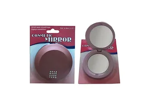 This compact cosmetic mirror features a 3x magnification for detailed makeup application. Perfect for on-the-go touch-ups, it includes two mirrors for a full view of your makeup. The mirror is stylishly designed and available in both light and dark pink colors, making it a chic addition to your cosmetic bag or travel kit.