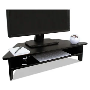 High Rise Monitor Stand raises your computer display to an ergonomic height, offering a simple solution to a common workplace problem: too much sitting. Studies show that sitting for prolonged periods of time is detrimental to your health. Using this converter to stand while you're working reduces or eliminates the pain you experience from being hunched over your desks and the negative long-term effects of sitting for long hours. The 27" wide x 11-1/2" deep surface is 6-1/2" tall to enable eye-level viewing. Sleek wood construction and a durable laminate coating provide years of use with a modern style. The rear portion of the desk is tapered to fit corner cubicles and notched to help manage cables. The lower shelf stores books, papers, or accessories. The monitor stand also works well as a stand for notebook computers, small printers, all-in-ones, scanners, TVs or fax machines. It includes nonslip rubber pads.