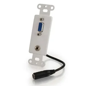 The C2G VGA and 3.5mm Audio Pass Through Wall Plate is designed to provide an elegant and practical solution for connecting video and audio source devices. This wall plate allows for easy access to both VGA and 3.5mm audio inputs without the clutter of wires visible in your space.