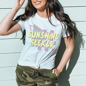 We use ultra-soft, premium triblend or 50/50 poly-cotton blend materials for a comfortable fit that caters to all body shapes. If you're looking for a more tailored look, consider sizing down.