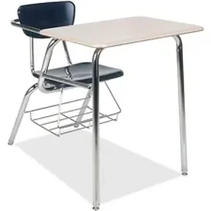 A colorfast, scratch-resistant Martest hard plastic seat and back, and a large 18" x 24" top, make 3000 Series 4-leg combo units best sellers in middle and upper grades. A tied-in arm welded to Virco's tubular steel back support delivers added strength. This chair desk model has a Martest hard plastic top and a steel-rod bookrack.