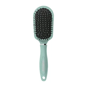 • Large air-cushioned brush made for all hair types;• Glides through hair effortlessly and detangling knots without hair damage ;• Durable nylon bristle and silicone cushion creates pliable but firm experience ;• Cushioned base stimulates blood flow in the scalp, producing healthier hair, encouraging hair growth, and enriching hair follicles with natural oils;• Small ventilation hole relieves air pressure to avoid damaging scalp;• Water-resistant, allows for use in shower ;• Rubberized soft-touch handles; finished with matte material to ensure solid grip;• Eco-friendly;• Blue and Silver;