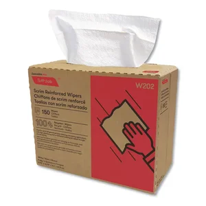 Cascades W202 Tuff-Job 4-Ply Popup Scrim Wipes, White, 150/Box