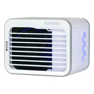 • Cools and humidifies by evaporation of water; cooling pad absorbs moisture which cools the air as it evaporates;• 3 speeds (low, medium and high) plus indicator lights;• Water tank capacity: 0.528 qt. (0.5 L);• Quick and easy top-fill water tank; runs for up to 8 hours per fill (on low speed); water level indicator makes monitoring water level easy;• Adjustable vents direct air flow where needed;• 6 LED lighting options;• Nonskid bottom grips keep cooler in place ;• Includes 39-in. micro-USB cable (DC 12, 5 volts, 2.5 watts) and user manual;