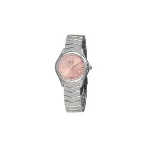 EBEL 1216217 Wave Pink Galvanic Dial Diamond Ladies Watch The Stainless steel case with a stainless steel bracelet. Fixed stainless steel bezel. Pink galvanic dial with silver-tone hands and diamond hour markers. Minute markers around the outer rim. Dial Type: Analog. Quartz movement. Scratch resistant sapphire crystal. Pull / push crown. Solid case back. Case size: 30 mm. Case thickness: 8.5 mm. Round case shape. Band width: 15 mm. Deployment clasp push button release clasp. Water resistant at 50 meters / 165 feet. Functions: hour, minute, second. Luxury watch style. Watch label: Swiss Made. Ebel Wave Pink Galvanic Dial Diamond Ladies Watch 1216217 Features: Brand: Ebel Series: Wave Model number: 1216217 Case Shape: Rectangle Crystal: Scratch Resistant Sapphire Display Type: Analog Clasp: Deployment with Push Button Release Case material: Stainless Steel Case size: 30 mm Case Thickness: 8.5 mm Band Material: Stainless Steel Band Type: Bracelet Band Color: Silver-tone Dial color: Pink Galvanic Bezel material: Stainless Steel Bezel function: Fixed Movement: Quartz Water resistant depth: 50 meters / 165 feet