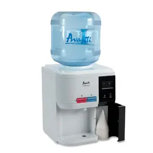 Avanti WD31EC Table Top Thermoelectric Water Cooler features Selectable Operational Modes: Normal or Energy Saver; Lightweight and Durable ABS Construction; Silent Thermoelectric Technology (No Compressor) for Use at Home or the Office; Full LED Display for all Functions; Push Button Faucets for Hot and Cold Drinking Water (Child Safety Guard on Hot Water Faucet); Built-In Cup Storage Compartment; Uses Standard 2, 3, or 5 Gallon Bottles (Bottles are not Included); Convenient Drain Plugs for Both Hot and Cold Water Reservoirs; Separate ON/OFF Power Switches for Hot and Cold Water Operations.