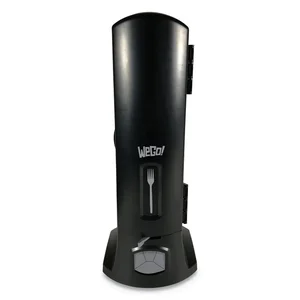 The WEGO Trio Black Dispenser measures 13.39" x 15.75" x 23.62" and is designed to hold multiple items securely. Its sleek black finish enhances any environment, making it perfect for offices, homes, or retail spaces.