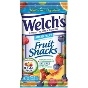 Mixed Fruit Snacks feature a delicious recipe that's made with real fruit for a tasty alternative to candy. Fat-free, gluten-free snack is an excellent source of Vitamins A, C and E. The delicious combination of flavors includes strawberry, white grape raspberry, orange, white grape peach and concord grape. Individual packs maintain complete freshness for maximum flavor. Fruit snacks are perfect for boosting office morale, impressing guests and more.