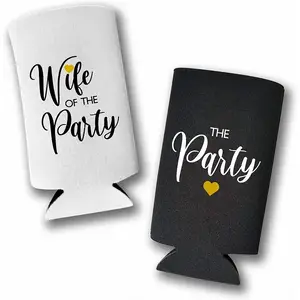 Capital City Commerce WIFE_OF_THE_PARTY_SLIM_1_BLACK_1_WHITE Bachelorette Party Coolers - Set of 2 Wedding Can Coolies