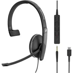 General InformationSC 135 USB-C (single-sided) and SC 165 USB-C (double-sided) are headsets with 3.5 mm jack and detachable USB-C cable, optimized for UC professionals who value device flexibility, great sound, discreet modern style and comfort. Activate your potential The SC 100 headsets make a great impression. From their contemporary sleek styling to great sound for calls and multimedia, they excel in all areas: at your workstation, on the move around the office or on your commute to work, there is a variant tailored to your needs. With discreet boom arm design, adjustable fit and a choice between acoustic foam or soft leatherette ear pads, the SC 100 headsets are built for flexibility and comfort. Sleek design Looks as good in the office as on the daily commute - with sleek contemporary design and bendable boom arm that folds discreetly into the headband.Technical InformationConnectivity Technology: WiredSound Mode: MonoMinimum Frequency Response: 20 HzMaximum Frequency Response: 20 kHzSound Pressure Level: 115 dBEarpieceEarpiece Design: Over-the-headEarpiece Type: MonauralMicrophoneMicrophone Technology: Noise CancellingMicrophone Design: Boom/On-cableInterfaces/PortsHost Interface: USB Type CHost Interface: Mini-phonePhysical CharacteristicsColor: BlackColor: WhiteForm Factor: Supra-auralWeight (Approximate): 2.26 oz