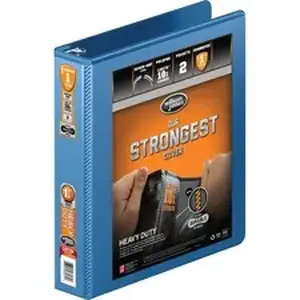 Heavy-duty view binder stands up well under pressure. No-Gap round rings stay aligned for easy page-turning and keep papers from falling out. 1" rings hold approximately 220 sheets. Metal round rings are back-mounted so pages lie flat. Clear, one-piece nonglare overlay on front, spine and back allows easy customization. Polypropylene cover resists tears and cracks. CleanView material throughout the binder resists toner transfers so ink from printed papers will not stick or mark binders. Easy-to-use templates for customizing your front cover and pages are available online. Two interior pockets provide space for additional documents. Binder also features exposed rivets and a sturdy chipboard core.