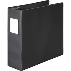 Basic D-Ring Binder holds 25 percent more capacity than standard-size, round-ring binders to maximize your storage space. D-ring mechanism includes opening and closing triggers for easy access. Rings are mounted on the back so the binder will last longer. Durable vinyl covers protect letter-size documents secured by the rings and loose papers in two opaque, interior pockets. Front cover folds back to create a convenient writing surface. Binder also includes a label holder and label insert.
