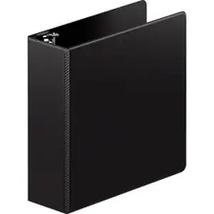 Binder features two interior pockets and a Locking No-Gap D-Ring mechanism that locks rings closed and keeps them aligned so sheets will not tear, fall out or hang up on rings. Metal rings are back-mounted to reduce wear and let pages lie flat. Cover and pocket material resists toner transfer so ink from printed papers won't stick or mark binders. Pocket Guard on both inside covers holds loose papers secure in pockets. Binder also includes a label holder on the spine for easy identification, sturdy chipboard core and exposed rivets. Durable construction protects important documents and is made to last.