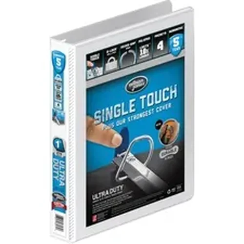 Heavy-duty binder features a locking D-ring that lets you open and close the rings with a single touch, making it easy to add or change contents. D-ring design holds up to 40 percent more paper than same-size round rings. Metal rings are back-mounted to reduce wear and let pages lie flat. Clear, nonglare one-piece overlay on front, spine and back allows easy transformation into a custom binder, perfect for presenting your work. The CleanView material resists ink and toner transfer so printed papers won't stick or mark binders. Binder also features exposed rivets and a sturdy chipboard core.