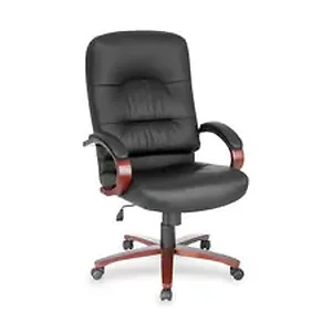 The Lorell Woodbridge Executive High-Back Chair combines luxury and comfort for the ultimate office experience. Crafted from premium top-grain black leather, this chair features a stylish design with finished wood arms and base caps. Its contoured seat and back are equipped with built-in lumbar support, ensuring optimum comfort during long hours of use. Perfect for executive offices or conference rooms, this chair is designed to enhance productivity while adding a touch of elegance to your workspace.