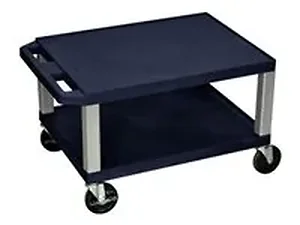 This 16"-high rolling AV cart is designed to support and transport audio/video equipment effortlessly. Featuring two 1.5" thick shelves with a textured surface and .25" retaining lip, it ensures that your equipment stays securely in place. The shelves are made from durable molded plastic that resists chipping, warping, scratching, rusting, and peeling. With sturdy square legs and four 4" heavy-duty casters (two of which have locking brakes), this cart provides excellent mobility and stability.