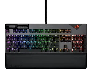 The ROG Strix Flare II is the ultimate gaming keyboard to fire up your game. It's loaded with a host of innovations, including ROG NX mechanical switches, PBT doubleshot keycaps, sound-dampening foam, 8000 Hz polling rate, 0.125 ms response time, dedicated media controls and detachable wrist rest.