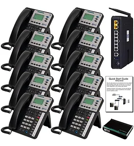 - Perfect for offices with up to 24 employees, the X-50 is quick and easy to self-install.- Includes X50 IP Phone System and 10 X3030 SIP Phones.- Remote telephone extension support - Voicemail for every phone - 32 hours voicemail storage - Built-in auto attendant - Up to 6 analog lines can also be connected- 1 FXS Port - 6 FXO Ports