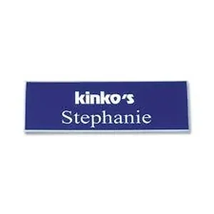 Name badge with logo includes choice of a standard pinback, swivel clip or military clutch fasteners. Magnetic fastener is available and sold separately. Choose from more than 35 fonts and more than 40 plastic insert colors. 1/16" thick Xecutives badge is manufactured from high-grade, durable plastic. Contact customer service to customize your name badge.
