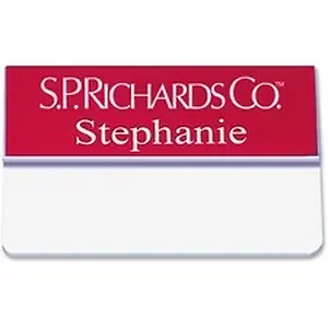 Keep your shirts undamaged and pinned free with this pocket name badge. It offers a clean, neat way to display your name. The pocket badge slips over the pocket and holds itself in place. Badge measures 3/4" x 3". Customize with a maximum of two lines and your choice of more than 35 fonts and 20 varieties of plate colors. The large size allows room for a logo. Badge is made of high-grade, durable plastic.