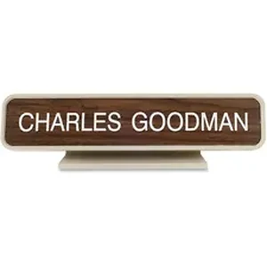 Designer desk sign is perfect for any front counter or office desk in offices, courthouses, schools and warehouses. High-quality plastic desk sign with rounded corners has been engineered as a quality interior sign system and features a distinctive professional look that matches any modern office environment. Choose from more than 35 fonts and more than 30 plastic insert colors. Contact customer service to customize your desk sign.