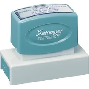 Personalize with a message, signature, logo or artwork. Custom stamp delivers one to six lines, each with a maximum of 37 characters. Ideal for large business address stamps. Stamp is pre-inked in either choice of red, black, blue, green, purple, orange, light blue, light green, yellow, pink and brown, and dispenses up to 50,000 impressions before re-inking. Impression size is 7/8" x 2-3/4". Ergonomic stamp contains a high percentage of recycled material. Contact customer service to customize your stamp. Complete orders are shipped within 48 hours of receipt by Xstamper.