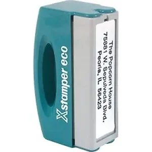 Pocket Stamp/Notary Stamp folds to fit into pocket, briefcase or purse. Stamp has an ergonomic handle and is pre-inked in either red, black, blue, green, purple, orange, light blue, light green, yellow, pink or brown, and dispenses 50,000 impressions before it needs to be re-inked. No stamp pad is required. Impression size is 1/2" x 2". Stamp delivers a maximum of four lines with up to 22 characters per line. Contact customer service to customize stamp. Complete orders are shipped within 48 hours of receipt by Xstamper. Plastic mount is made with a high percentage of recycled material. Total stamp is made with a high percentage of recycled material.