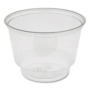 These clear sundae cups are perfect for serving delicious desserts. With a capacity of 8 ounces, each cup has a diameter of 4 inches and a height of 3 inches.