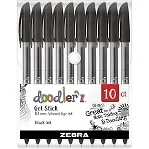 Zebra ZEB 41910 Pen Doodler'z Gel Stick Pens - 1 mm Pen Point Size - Black Water Based Ink - Plastic Barrel - 10 / Pack